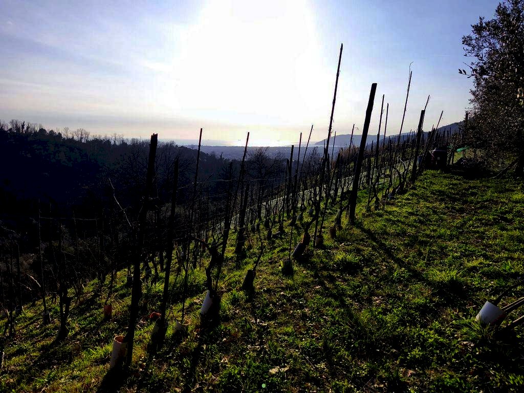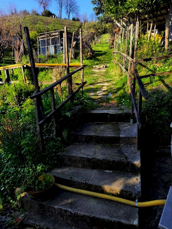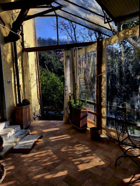 IN POSIZIONE STUPENDA, SOLEGGIATA E TRANQUILLA, questa casa semindipendente disposta su due livelli e libera su tre lati, attaccata da un lato a un' altra abitazione solamente è ideale per chi cerca privacy, tranquillità e per chi ha voglia di lavorare! Infatti è circondata da un ampio terreno a piane, per l' esattezza sono 100 piane di circa 30 metri di lunghezza cadauna, coltivate in parte a vigneto e in parte ad alberi da frutta di tutti i tipi. Sul terreno sono presenti diversi ricoveri attrezzi. Dal culmine del terreno si gode di una spettacolare vista sulla foce del magra e sulle alpi apuane. La casa è costituita da un salotto di ingresso, una grande cucina abitabile con camino e il bagno finestrato e al piano superiore, accessibile non troppo agevolmente le due camere da letto. Il bagno a questo piano non è ancora presente ma già concessionato e di prossima realizzazione. La casa ha finiture originali, non è grandissima sono circa 80 mq. ma è accogliente ed è in perfetto stato generale. Solo il bagno è stato rifatto recentemente.