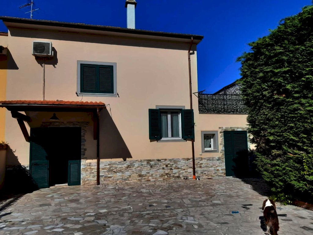 A poca distanza da Cenaia, in contesto tranquillo e riservato, viene proposta in vendita questa porzione di casa libera su tre lati svolta su due piani per circa 290 mq., corredata da giardino privato di 250 mp e resede per posti auto. L'immobile รจ stato ristrutturato nel 2007, infissi con doppio vetro, persiane in pvc, riscaldamento con caldaia a pallet, pozzo sorgivo. Attualmente viene utilizzato come due appartamenti indipendenti, al Piano Terra troviamo un ampio soggiorno con bellissimo camino, due cucine, camera matrimoniale, cameretta, lavanderia, bagno e garage, al Piano Primo troviamo due camere matrimoniali, una cameretta, lavanderia, bagno e una stupenda terrazza di 50 mq. Il tutto in ottimo stato di manutenzione.