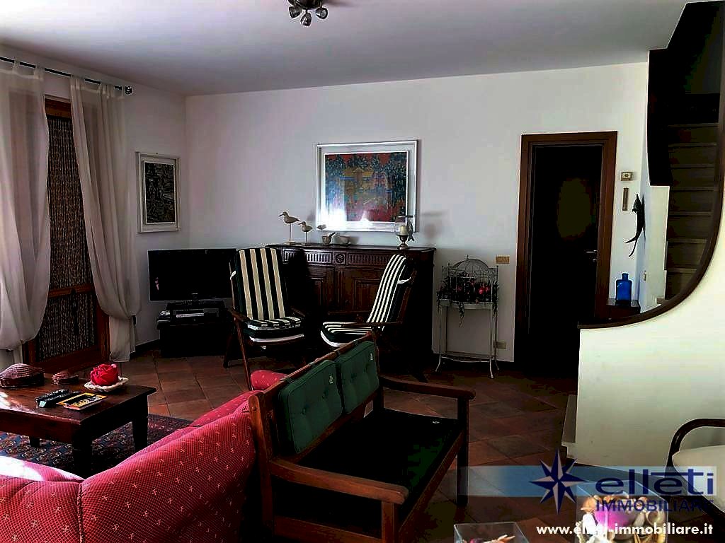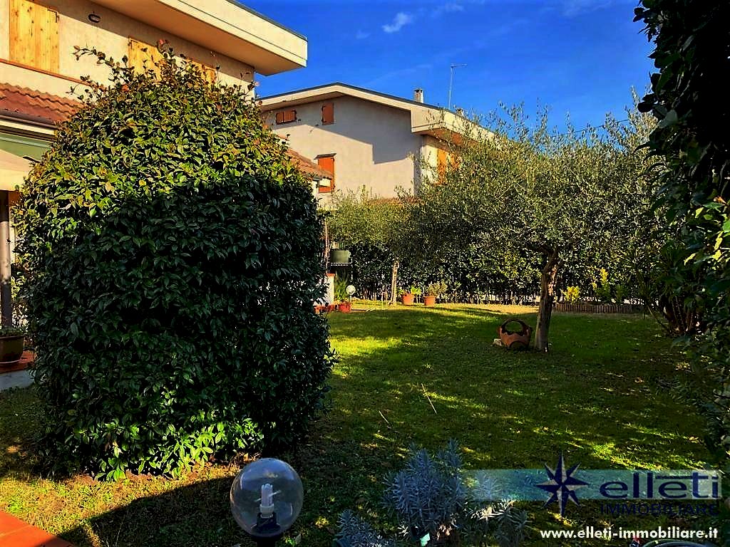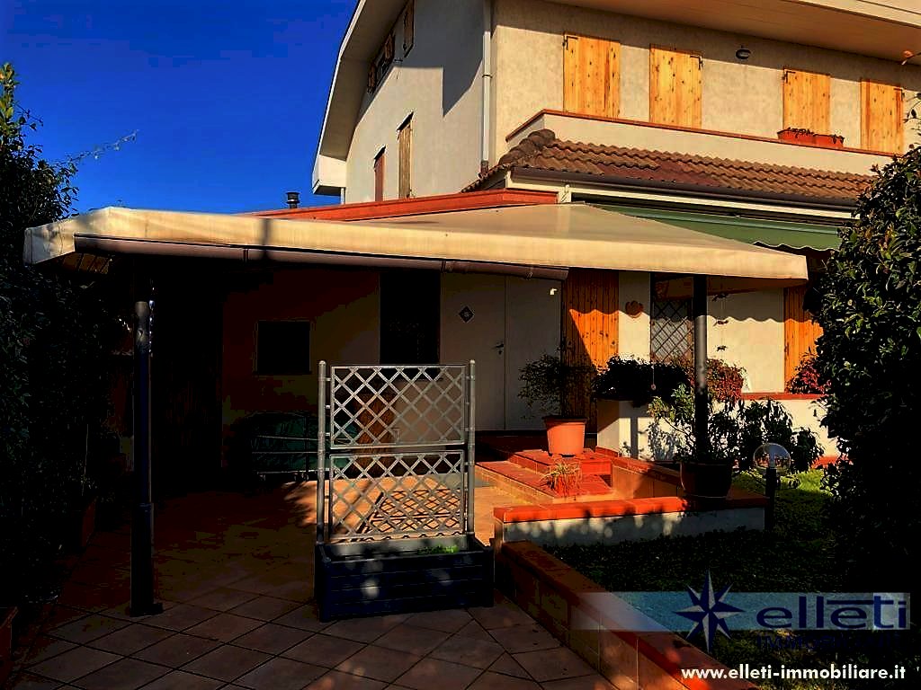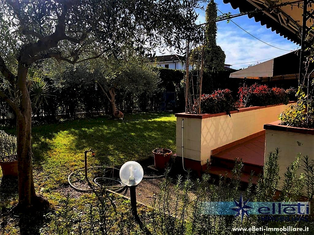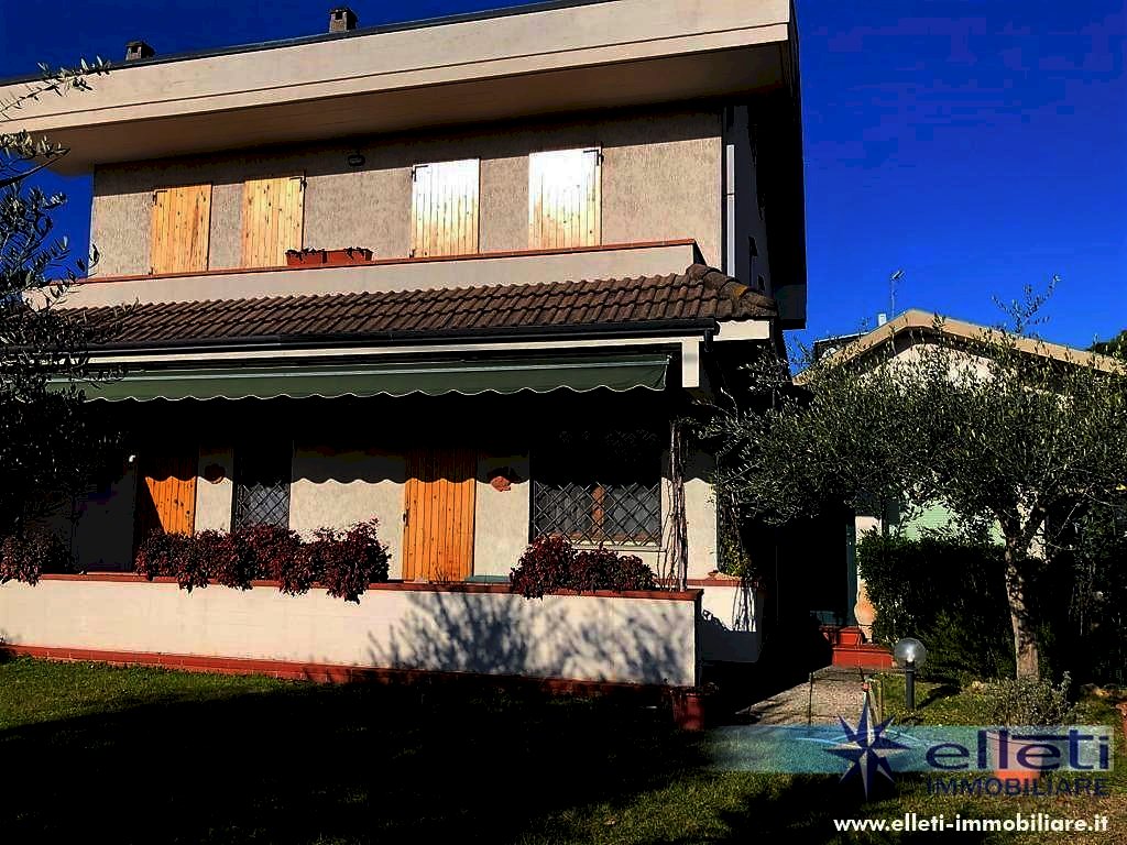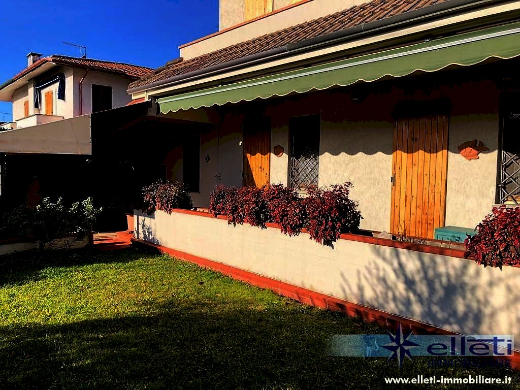 Cinquale. A circa 2 km dal mare in zona tranquilla e riservata si vende porzione di bifamiliare sviluppata su tre piani fuori terra e circondata da ampio giardino su tre lati con posto auto interno. Si compone di soggiorno con accesso a bella veranda chiusa, zona pranzo, cucina, lavanderia, ripostiglio e bagno a piano terra; Camera matrimoniale, camera doppia, camera singola e bagno oltre balconi a piano primo; Grande camera matrimoniale e bagno a piano sottotetto. Completamente arredata. Rif. M227.