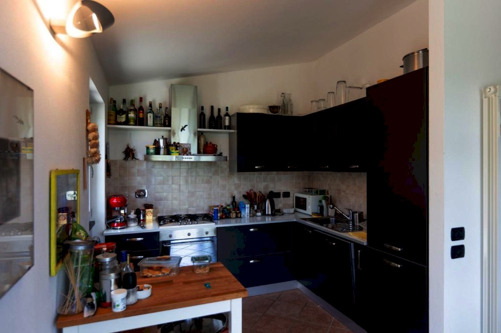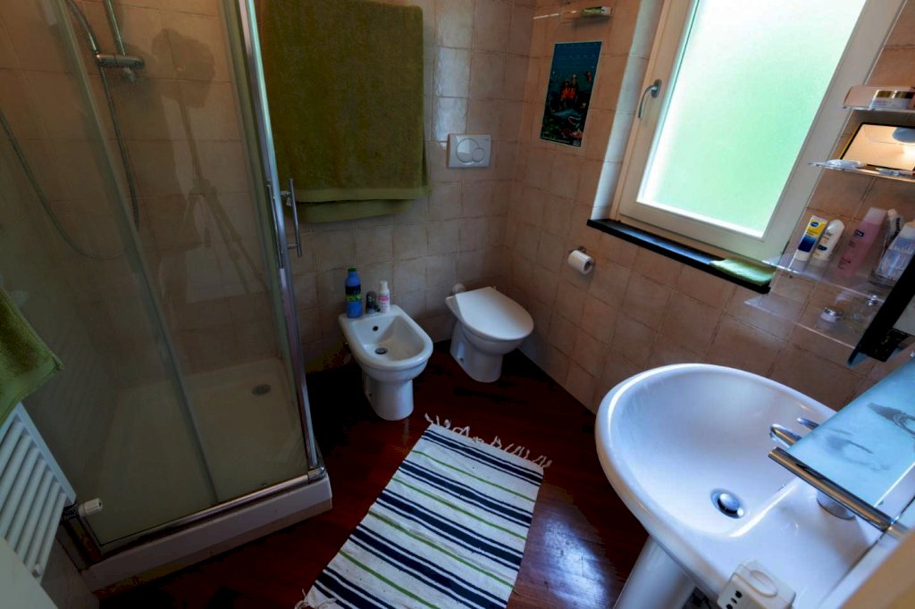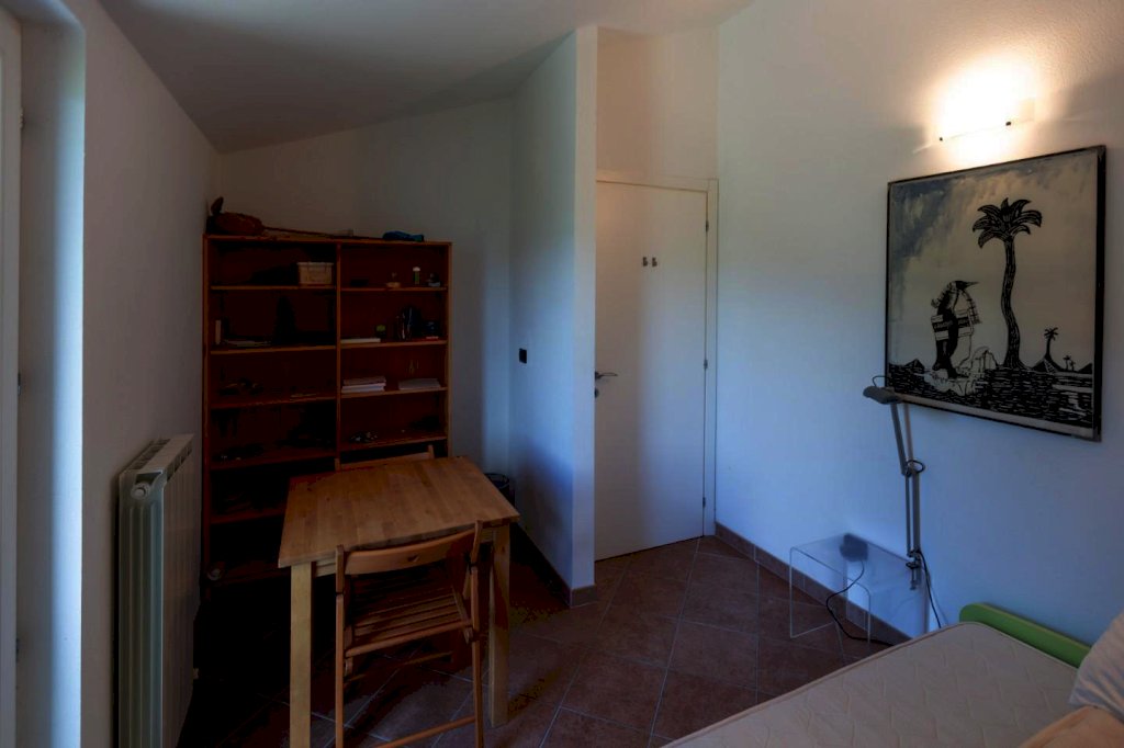 Al primo piano, la zona giorno luminosa con sala e cucina, due camere (una matrimoniale e una doppia), bagno con finestra e ripostiglio.