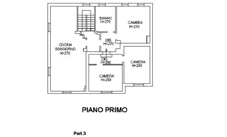 Al piano primo si trova un ampia zona giorno, due camere da letto e un bagno, il tutto distribuito da disimpegno