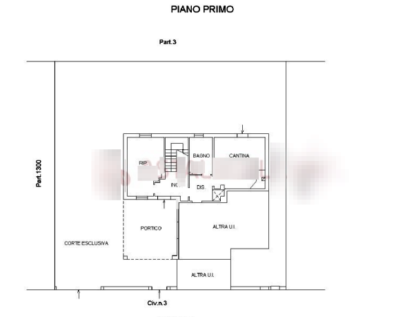 Il residenziale viene circondato da corte e si distribuisce a due piani uniti da scala interna; al piano terra adibito principalmente a servizi con cantina ripostiglio e bagno mediante portico si accede all'ingresso dove si colloca la scala di collegamento al piano primo.