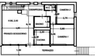Al piano terra si trovano un ampio ingresso con ripostiglio, due vani ad uso soggiorno, una camera e un bagno. Al primo piano sono presenti un grande soggiorno, cucina, due bagni, due camere e un ampio terrazzo.