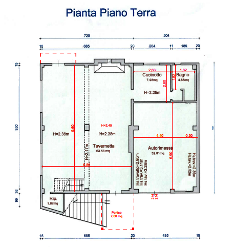 Troviamo inoltre un' autorimessa annessa all'edificio residenziale con accesso indipendente da area cortiliva pertinenziale recintata e un magazzino distribuito su due piani.