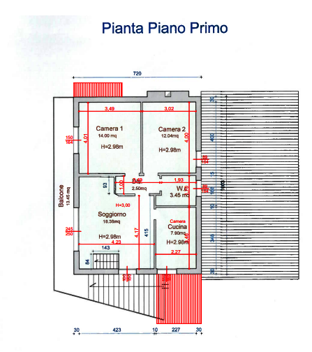 L'immobile residenziale con accesso indipendente da area cortiliva pertinenziale recintata costituito da piano terra (soggiorno/tavernetta con camino, cucina, bagno, disimpegno, ripostiglio e portico) e piano primo (soggiorno con camino, tre camere, bagno, disimpegno, balcone), collegati da una scala interna e con anche accesso indipendente esterno al piano primo.