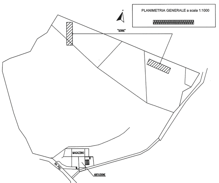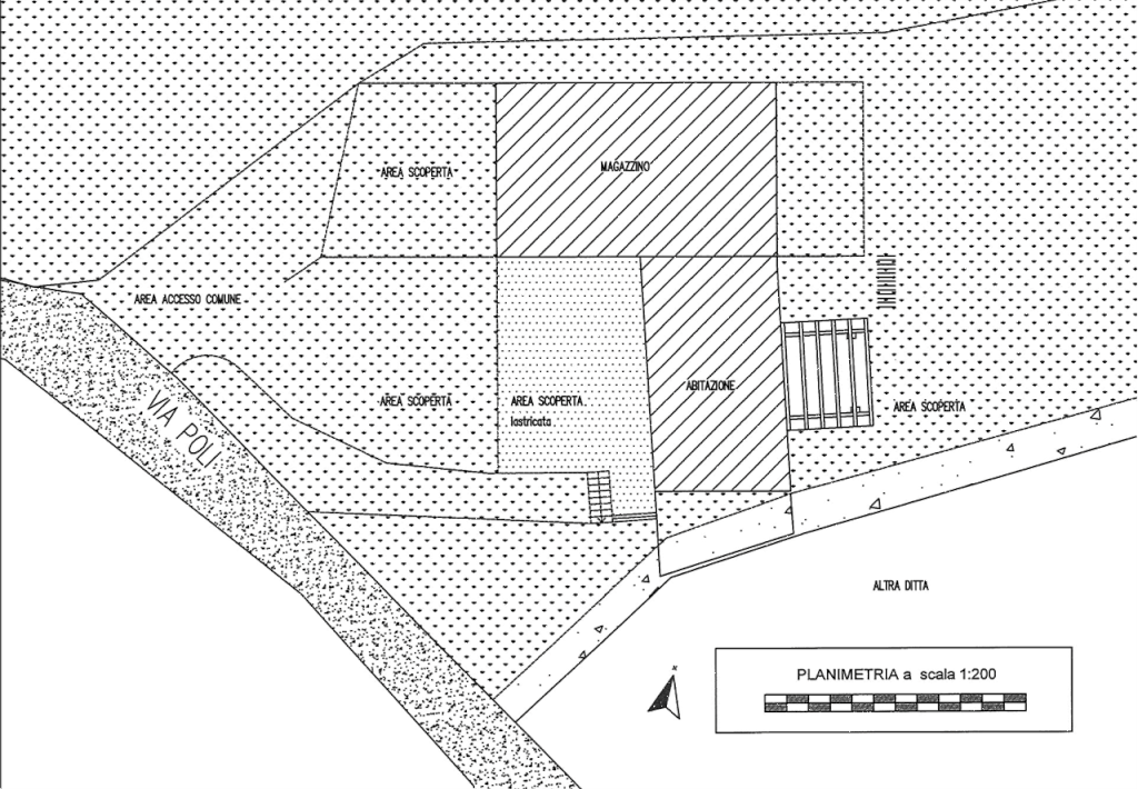 Casa singola, un magazzino ed un'area agricola adiacente situata in Brogliano (VI) in via Poli. L'edificio residenziale si sviluppa su due piani, al piano terra si trova il soggiorno in vano unico con la cucina ed affacci sul lato ovest d'ingresso e sul lato est, dove è stato realizzato un piccolo pergolato con caminetto. Al piano primo si trovano un disimpegno, il bagno e due camere ognuna con piccolo poggiolo.Il magazzino di 197 metri quadri al piano terreno è composto da un unico vano e da un servizio igienico. I terreni agricoli di 19.218 metri quadri, in terreno prevalentemente scosceso, sono raggiungibili tramite un sentiero e sono solo parzialmente coltivati come orto ed attrezzati con due precarie strutture a serra.