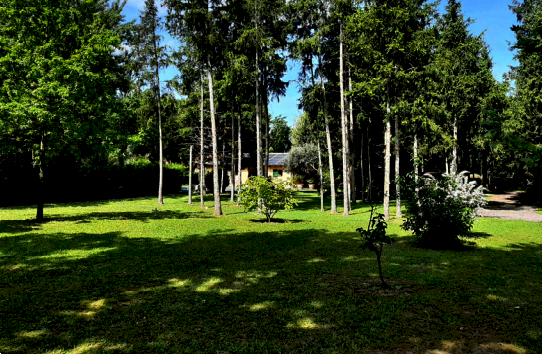 Edificio che si trova all'interno di un grande parco nel quale è presente una folta vegetazione costituita da numerose tipologie di alberi e piante e dove è stato ricavato un grande specchio d'acqua. Unità sviluppata su due livelli di piano direttamente accessibile dalla corte e da un monolocale accessibile da un vano scale comune con entrata dal lato lungo dell'edificio. È ricompreso nel lotto uno stabile accessorio al cui interno sono presenti un'autorimessa ed alcuni locali ad uso deposito e servizi in adiacenza del quale è stata edificata una piscina. Sulla superficie del parco insistono inoltre un piccolo stabile in prossimità del laghetto ad uso deposito attrezzature ed una serra utilizzata per il ricovero di attrezzi da giardino.