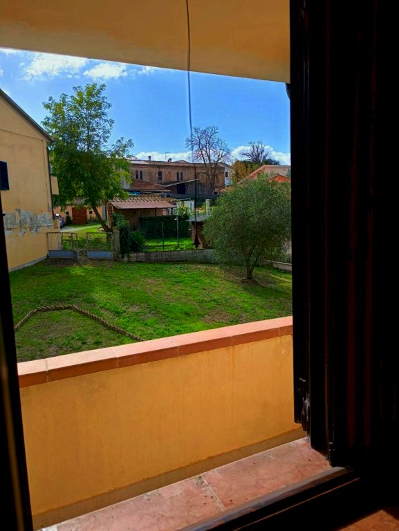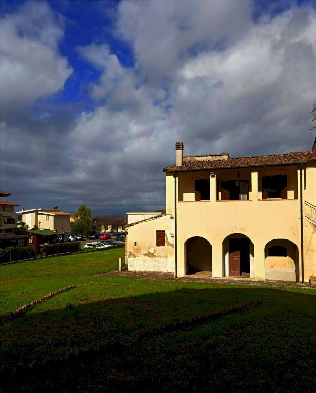 Capannoli a 10' dalla superstrada vendesi in esclusiva particolare porzione di casolare o terra-tetto d'angolo svolto su 2 piani, contornato da giardino esclusivo su tre lati di circa 600 mq. Si entra nella proprietà da grande giardino ben posizionato a sole, scala esterna con porticato per accedere all'appartamento composto da ampia zona giorno con angolo cucina, disimpegno, 2 camere, bagno.