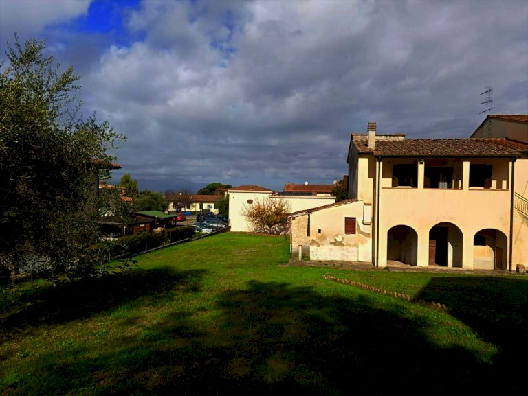 Capannoli, 10 minutes from the highway, offers exclusive sale of a unique portion of a farmhouse or corner townhouse on two levels, surrounded by a private garden on three sides of approximately 600 square meters. The property is accessed from a large, sunny garden, and an external staircase with a porch leads to the apartment, comprising a spacious living area with kitchenette, hallway, two bedrooms, and a bathroom. On the ground floor are large rustic rooms, former stables and cellars, ideal for storage or conversion into living spaces. Great potential with the use of the large garden and the independence of the three sides, with many rooms for different uses. Energy Performance Certificate (EPC) F 226.91 kWh/m2 per year. Ref. 1433 €219,000 negotiable! If you're looking for a villa to customize, this could be the one for you!