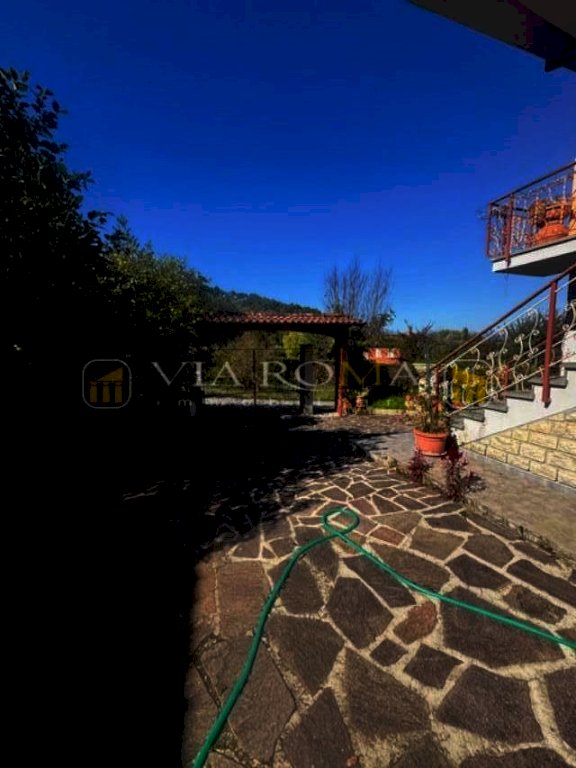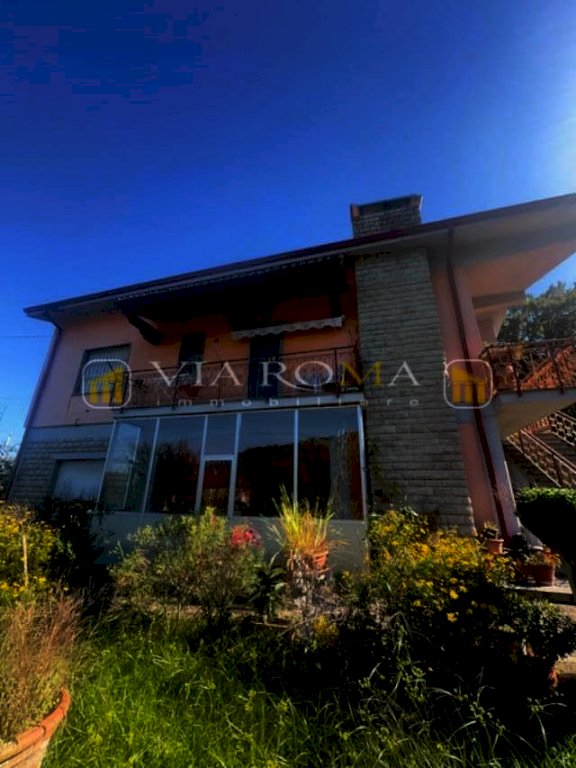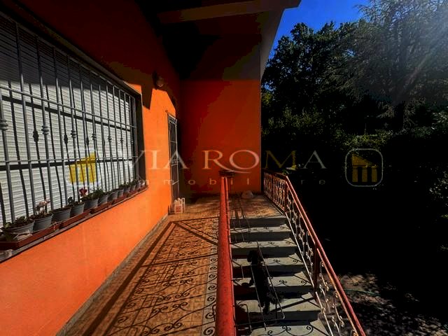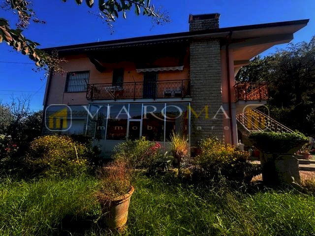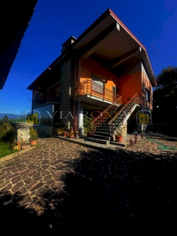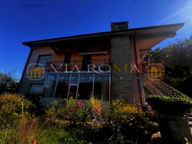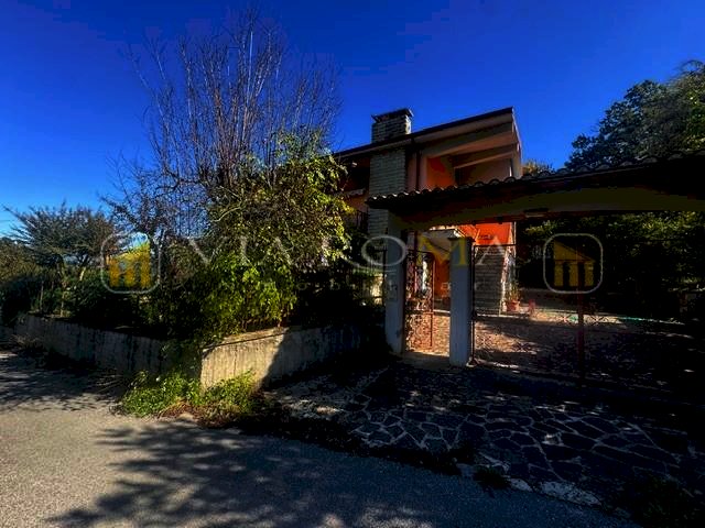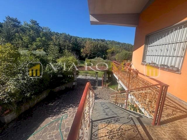 Villa singola corredata da giardino privato, garage, porticato, box condonato e giardino si compone di: al primo piano con accesso da scala esterna e terrazzo, ingresso, salotto con caminetto, zona pranzo con caminetto, cucina con terrazzo, disimpegno della zona notte con tre camere due bagni e piccolo studio, scala interna per accedere al piano terra con tre vani e garage oltre ad ampio porticato. Corredato da terreno di fronte all'abitazione di circa 2000 mq.