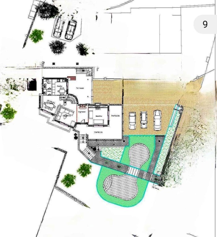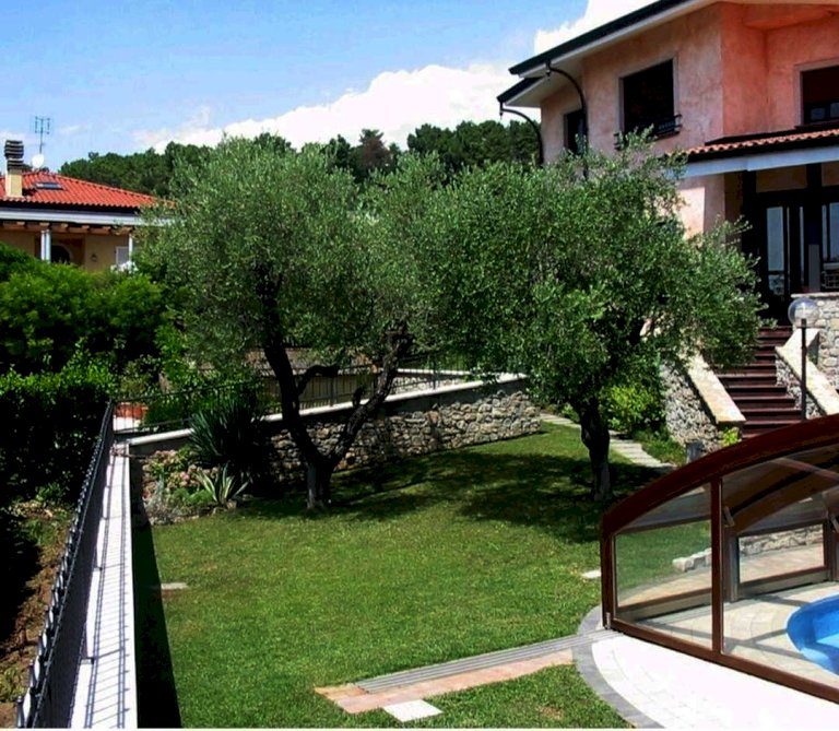 Oltre al terreno di circa 1000 metri quadri, troviamo nella parte più bassa del terreno una piscina di forma irregolare, lunga circa 12 metri, provvista di coperta in plexiglass di dorata di impianto di riscaldamento.