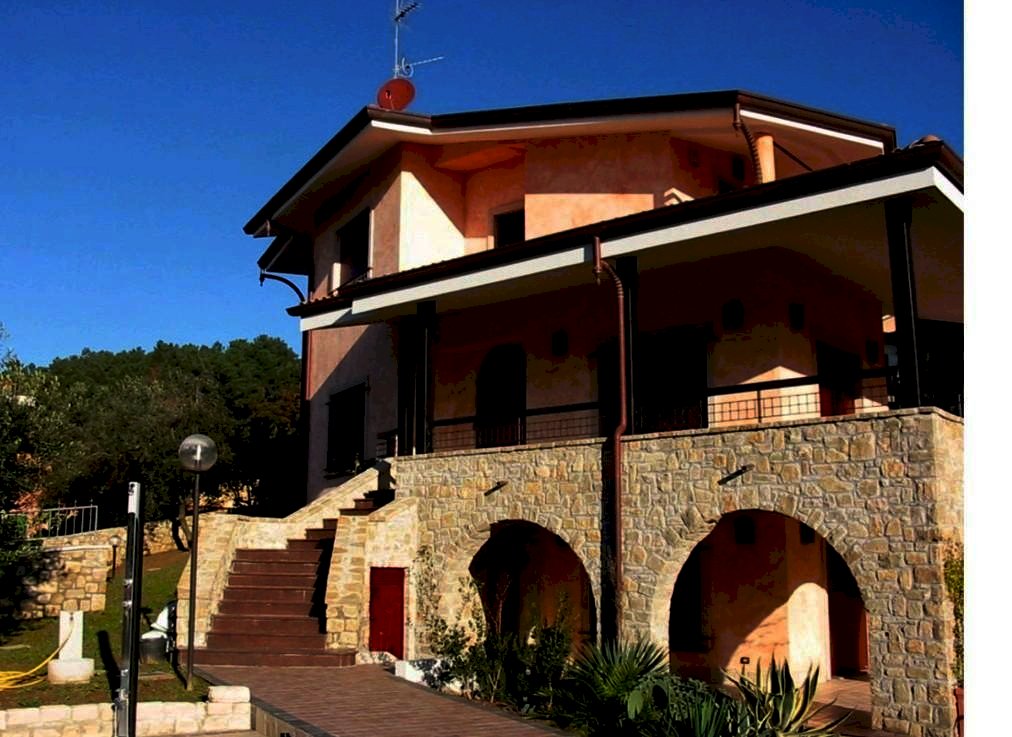 La villa è ben esposta, collocata in zona sopraelevata rispetto alla strada ed è così composta: ampio ingresso, soggiorno cucina abitabile, sala da pranzo con grande terrazza, antibagno e bagno: al piano superiore troviamo 3 camere matrimoniali, un bagno e balcone porticato coperto.
