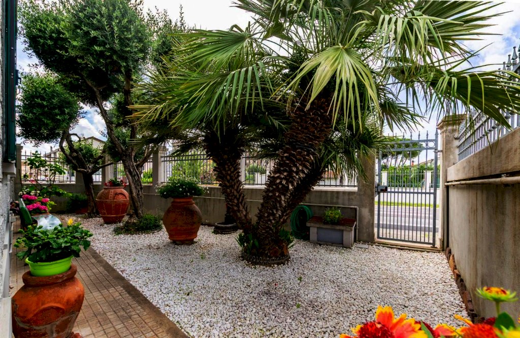 Al piano terra oltre che al resede sviluppantesi su 3 lati dove comodamente possono essere posteggiate 3 auto di cui due al coperto, insiste un corpo staccato adibito in parte a garage ed in parte a locali di sgombero con bagnetto di servizio per un totale di circa 80 mq.