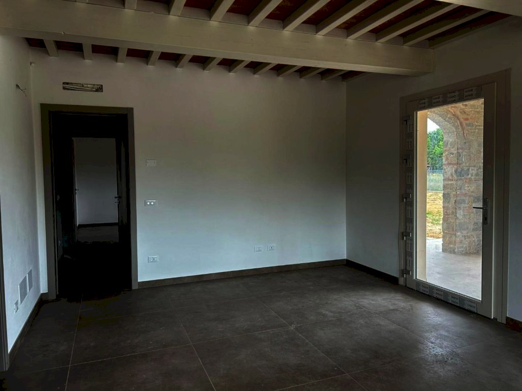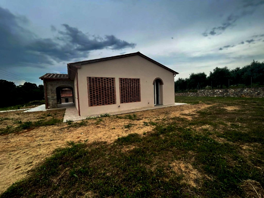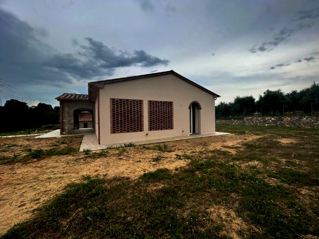 Nelle bellissime campagne di Orentano, è proposta la vendita di una villa di nuova costruzione e libera su 4 lati. La residenza, che si sviluppa su un unico livello ad esclusione dei locali accessori, è così composta:attraverso un portico si guadagna l'ingresso nella spaziosa zona living, la cucina è abitabile e la zona giorno è servita da un bagno completo; la zona notte è composta da una camera matrimoniale con uscita verso il giardino, una camera doppia, una singola ed un bagno.