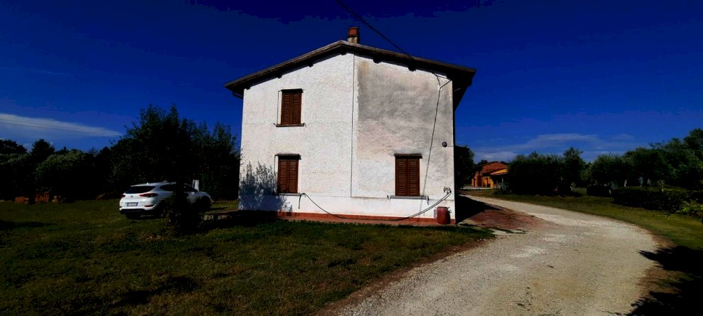 Circondata da un ampio terreno agricolo esclusivo in aperta campagna, trova ubicazione questa casa a solo in parte già ristrutturata. L'intero fabbricato che si sviluppa su due piani fuori terra di oltre 240 Mq circa ben si adatta ad un più grande nucleo familiare avendo già una sua zona giorno e zona notte separate. Ad oggi nel suo insieme sono presenti 3 bagni e 5 camere. Completano la proprietà oltre al terreno agricolo di circa Mq 7000, locali cantine.