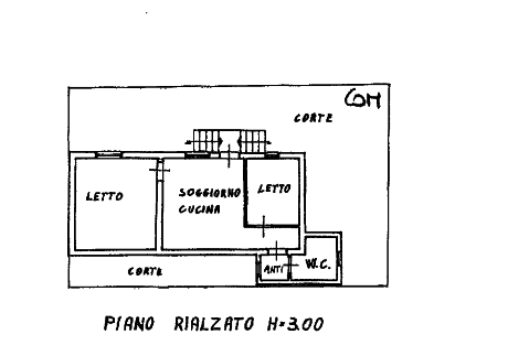 Edificio distribuito al piano terra, composto da tre vani, oltre wc ed anti wc, ed al piano seminterrato - raggiungibile da scala esterna in cui si trovano due vani cantina, oltre a corte (piccolo appezzamento di terreno a sud ovest di146 metri quadri).