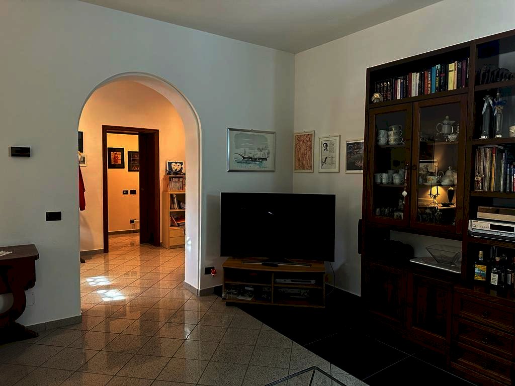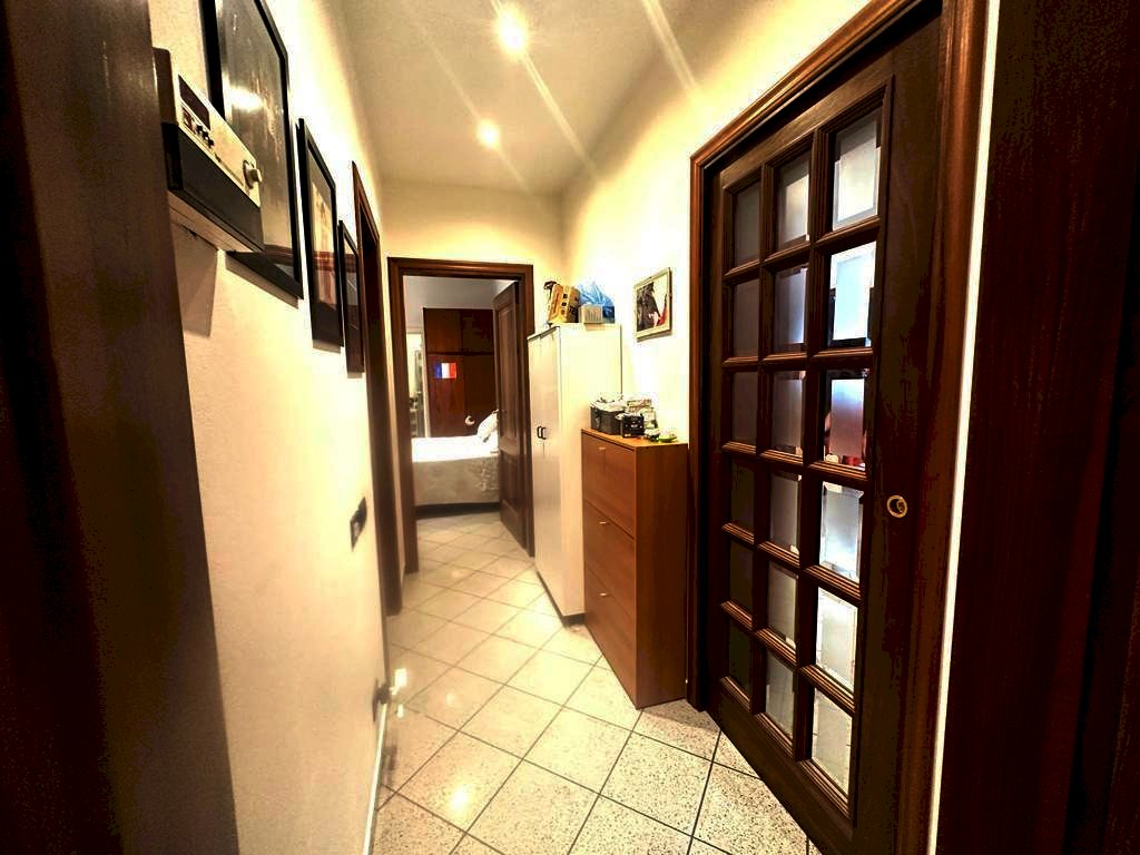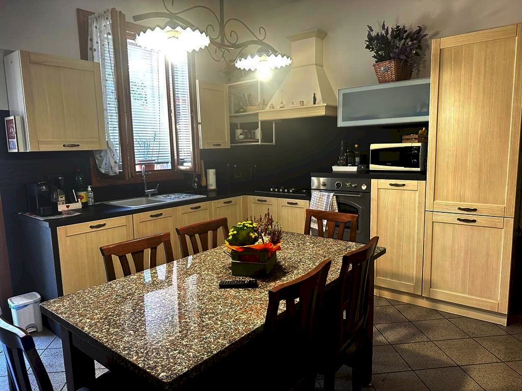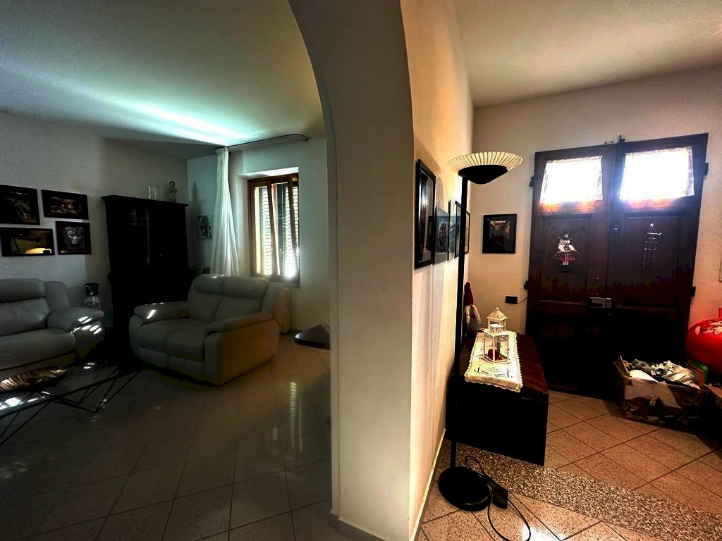 Al piano terra appartamento ristrutturato composto da ingresso, salotto ampio, cucina con camino, disimpegno zona notte, due camere matrimoniali, due bagni e accesso alla cantina.