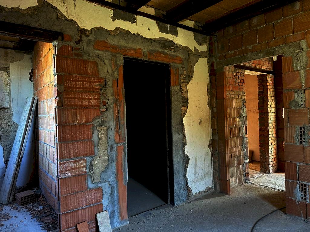 Al piano primo con accesso indipendente da scala esclusiva, appartamento allo stato grezzo, composto da grande soggiorno cucina open Space con affaccio sulla bellissima terrazza di 60 mq, ripostiglio, disimpegno zona notte, due camere matrimoniali di cui una con reparto guardaroba e bagno en suite, camera singola e ulteriore bagno. Dalla zona giorno predisposizione per accesso alla mansarda. L‘appartamento al piano primo viene venduto allo stato attuale con i lavori da terminare, nella parte di impiantistica, rifiniture, infissi, rivestimenti.