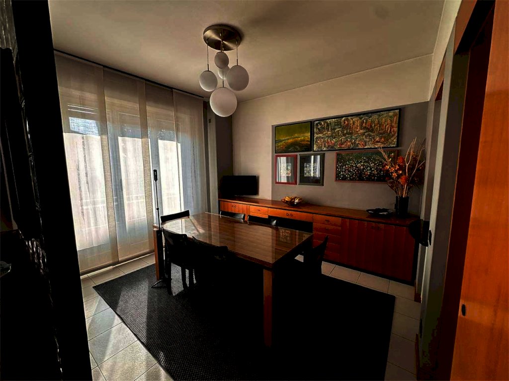 appartamento al piano rialzato composto da: ingresso, soggiorno con ampio portico, sala pranzo con cucina e balcone, disimpegno, 2 camere matrimoniali e bagno, con pertinenza di autorimessa doppia al piano seminterrato e ampia cantina.