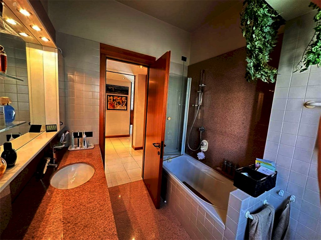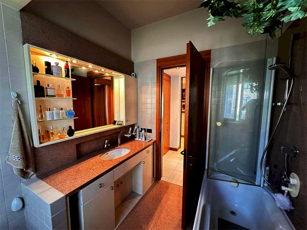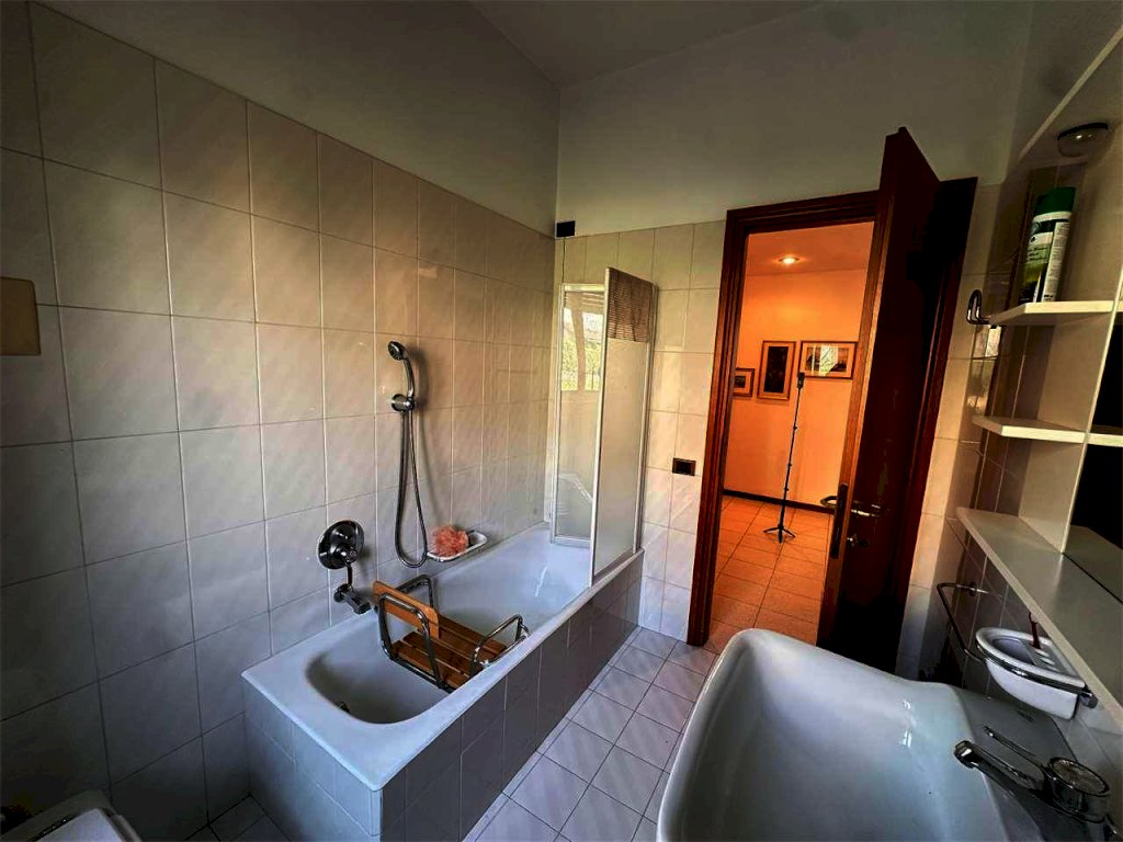 appartamento al piano primo totalmente ristrutturatocomposto da ampia zona giorno con soggiorno e pranzo, cucina separata, 2 camere matrimoniali, bagno, ampio terrazzo sul soggiorno, balcone sulla zona pranzo e sulla camera padronale, piano sottotetto con possibilità di realizzazione di camere e/o loc. studio, 2 posto auto coperti di pertinenza e cantina. Giardino di mq. 300. Libera entro settembre 2026