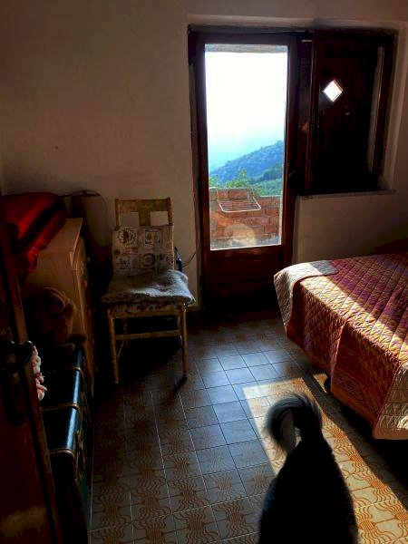 Fosdinovo, subito dopo il paese, casa indipendente da ristrutturare con giardino e cantina, disposta su due livelli, composta al piano terra da portico d'ingresso, disimpegno, soggiorno/pranzo con camino, due camere, bagno e studio, al piano primo mansardato, alto e comodo, corridoio, ulteriori due camere matrimoniali entrambe con affaccio su ampia terrazza , bagno e sottotetto uso ripostiglio.