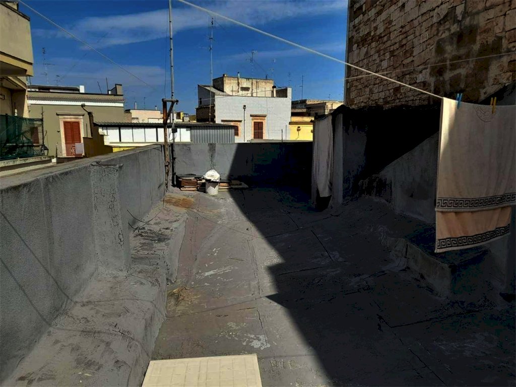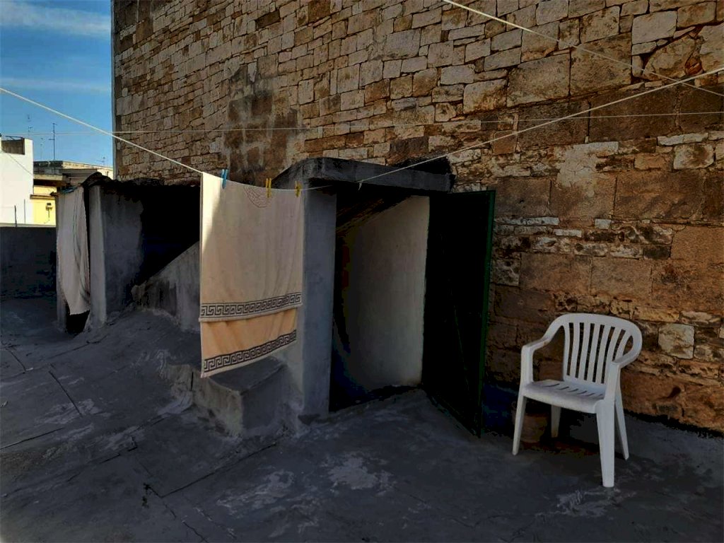 Grumo Appula: Proponiamo in vendita, in esclusiva, casa indipendente di due vani oltre accessori di 65 mq interni con due ingressi ingressi autonomi. L'immobile è sito a due passi dalla Chiesa del Santo Patrono Di San Rocco. L'appartamento ha una grande sala da pranzo con camino, angolo cottura, bagno con vasca e camera da letto. Il tutto si completa con il lastrico solare di esclusiva proprietà e la cantinola di 15 mq c.a.