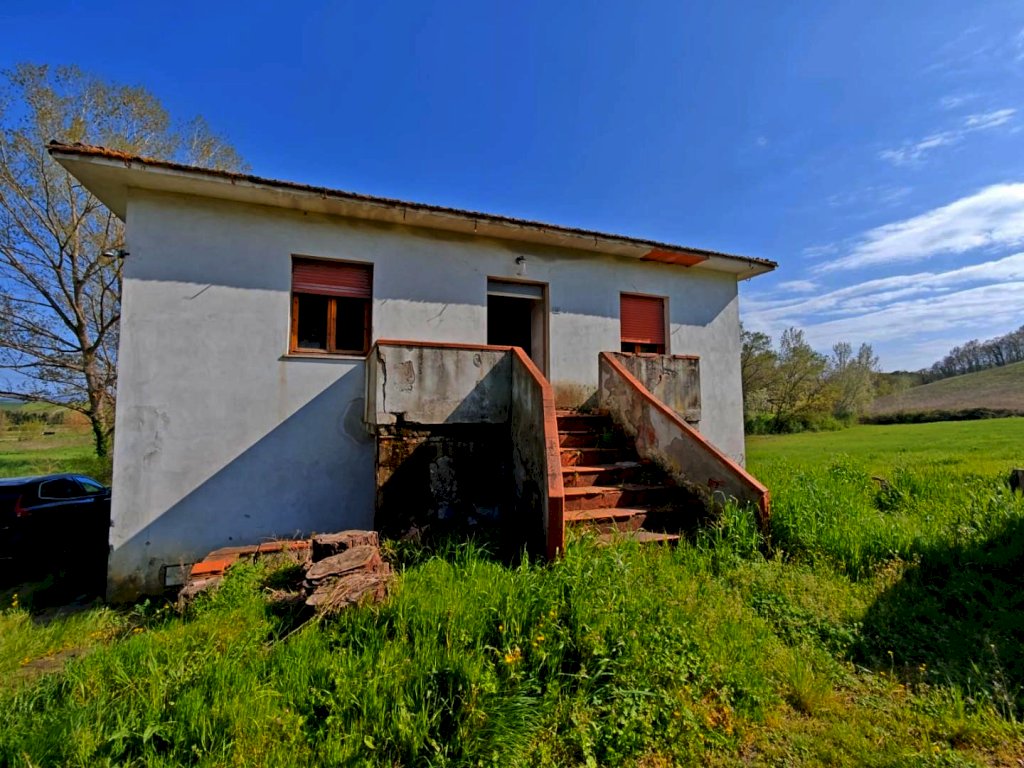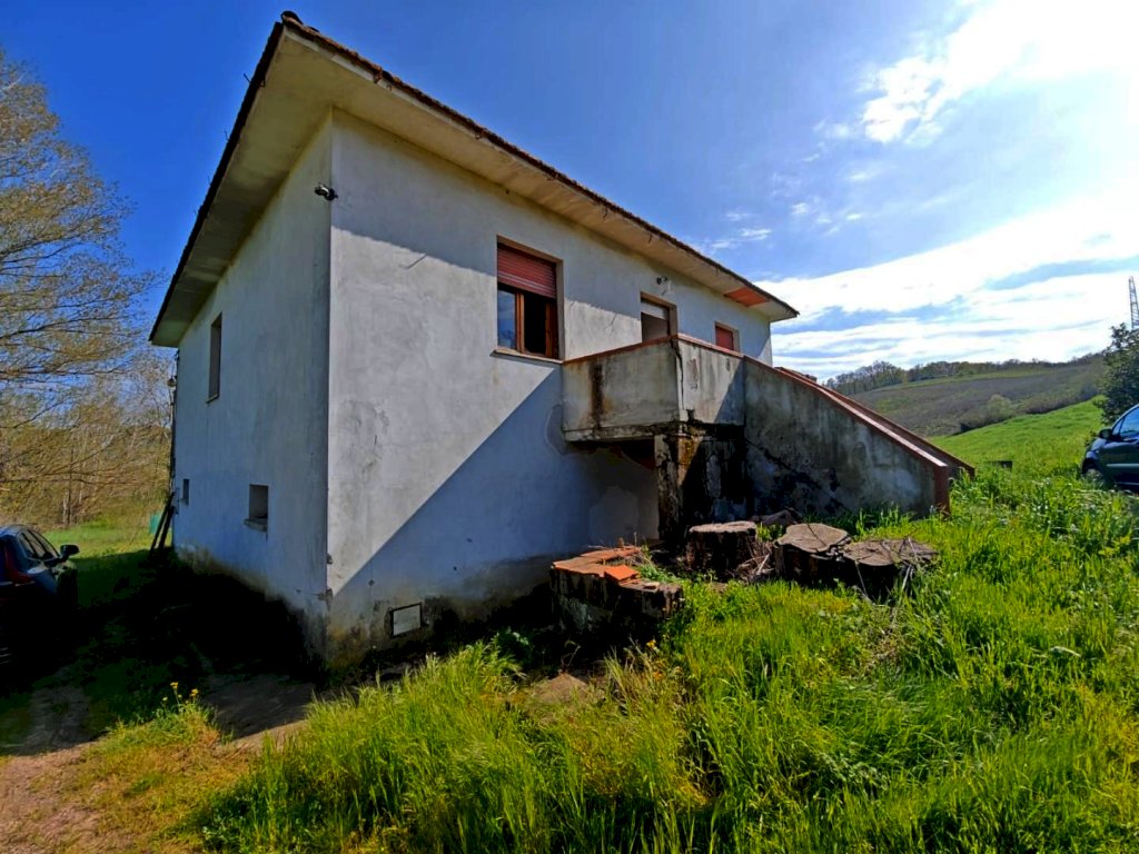 La Sterza, a pochi km da Lajatico e da Volterra, proponiamo in vendita questa casa singola con terreno da ristrutturare. Alla casa si accede tramite una strada sterrata che ci porta all'interno della proprietà. La casa si sviluppa su due livelli; a piano terra troviamo due ampi fondi per un totale di 120 mq con altezza di 3 mt circa, adatti ad uso garage o taverna. Al primo piano invece troviamo l'appartamento con ingresso tramite scala esterna. Nella zona giorno ci sono una grande cucina e una sala, nella zona notte quattro camere matrimoniali e il bagno. Il terreno di forma pianeggiante che circonda tutta la casa si estende per circa 1000 mq.