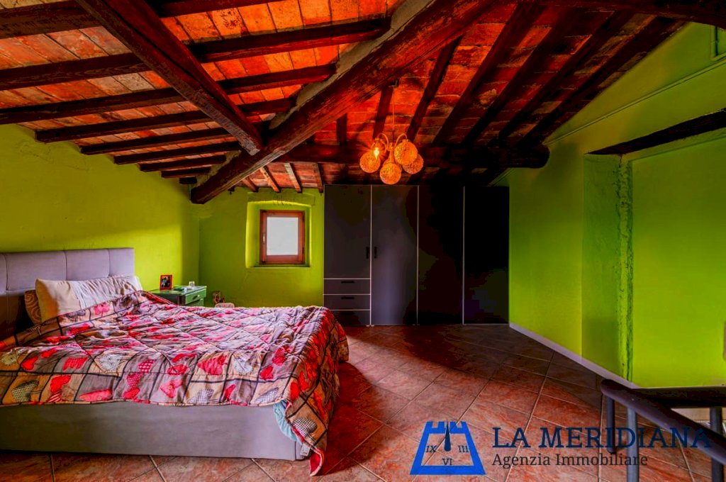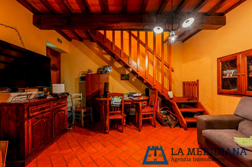 Il tutto in stile rustico toscano, con travi in legno a vista e cotto, oltre scala in pietra.