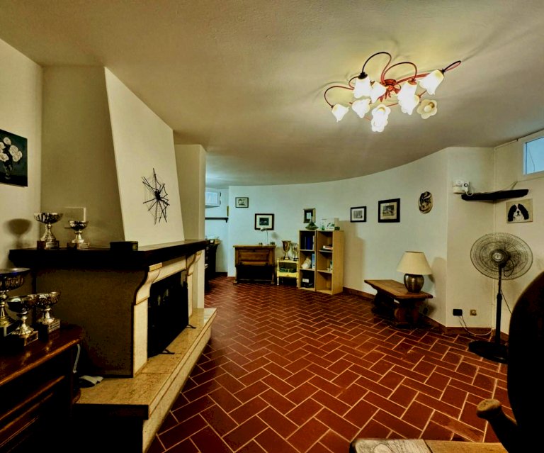 Il piano semi-interrato della villa (che dispone di un ingresso esclusivo) è occupato da una spaziosa taverna con camino, sala pranzo e cucina. Questo livello ospita inoltre un terzo bagno con la doccia oltre a due vani tecnici.