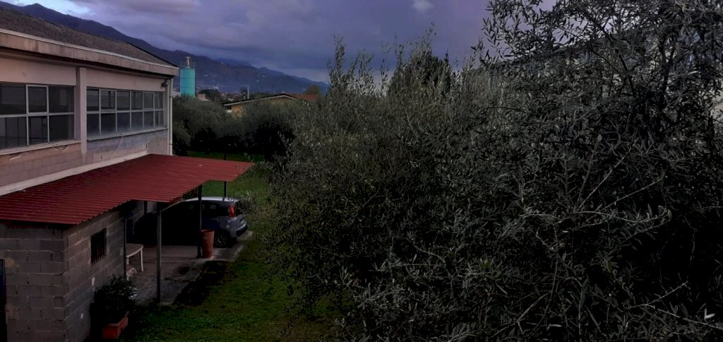 Massa, zona Stadio. Vendesi casa singola con annesso capannone artigianale di 600mq attualmente locato. L' appartamento è posto al primo piano dello stabile, mentre al piano terra troviamo ampi vani adibiti ad esposizione per l' attività svolta nel capannone adiacente. L' unità immobiliare è composta da grande soggiorno con accesso al terrazzo, cucina abitabile con terrazzo verandato, tre ampie camere, doppi servizi finestrati con vasca e doccia, infissi in legno massello, ottime rifiniture. Al piano seminterrato accessibile da scala interna, troviamo altrettanti 120mq da sistemare per creare un ampia taverna. Completano la proprietà un giardino di circa 600mq con 60 piante di olivo. Ottimo come unità abitativa e come investimento.