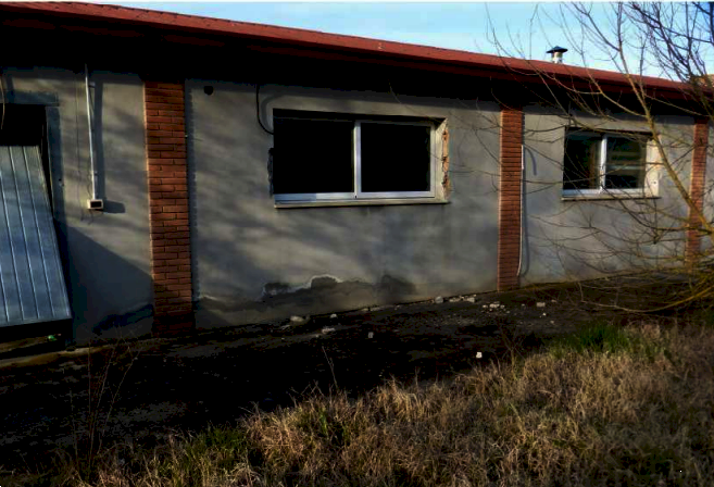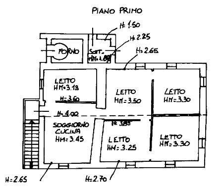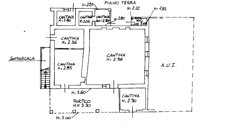 L'unità abitativa si sviluppa su due livelli: al piano terra si trovano i locali cantina, un bagno e un portico; al piano primo sono presenti il soggiorno, la cucina e cinque camere da letto. Completa la proprietà un ampio capannone agricolo, suddiviso con pareti in cartongesso per individuare tre servizi igienici, alcune camere da letto e un grande salone con camino in muratura.