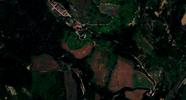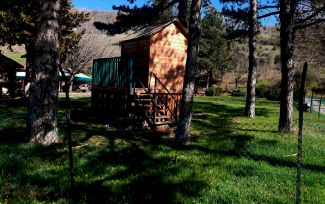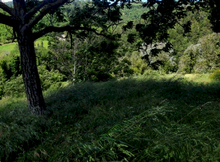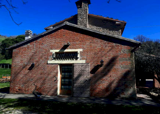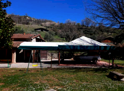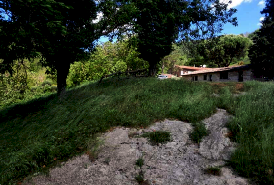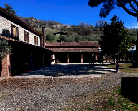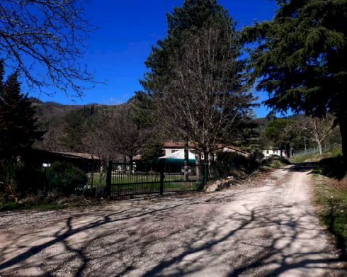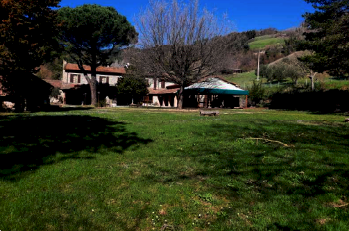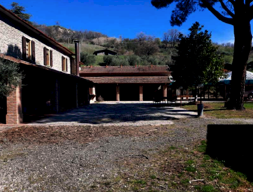 dimensioni minori alla principale; all'estremità sud è posizionato un volume ad un solo piano suddiviso in due ambienti, un locale destinato a Centrale Termica ed un monolocale con soppalco e bagno, entrambe con ingresso indipendente dall'esterno. La porzione centrale del fabbricato si eleva al piano superiore e tramite la scala interna si accede al piano primo che, disimpegnato da un corridoio centrale è suddiviso in vari ambienti: cinque camere, quattro bagni, due ripostigli ed una zona cucina-pranzo. Terreni di complessivi ha 5.84.82