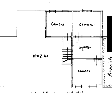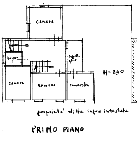 Piano primo: quattro camere, ripostiglio, bagno e atrio.