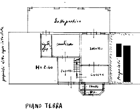 Piano terra: ingresso, salotto, cucina, sbratta e ripostiglio.