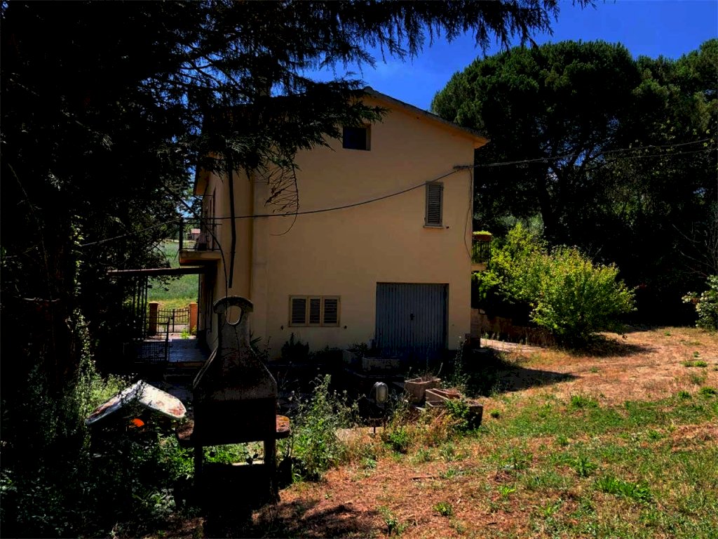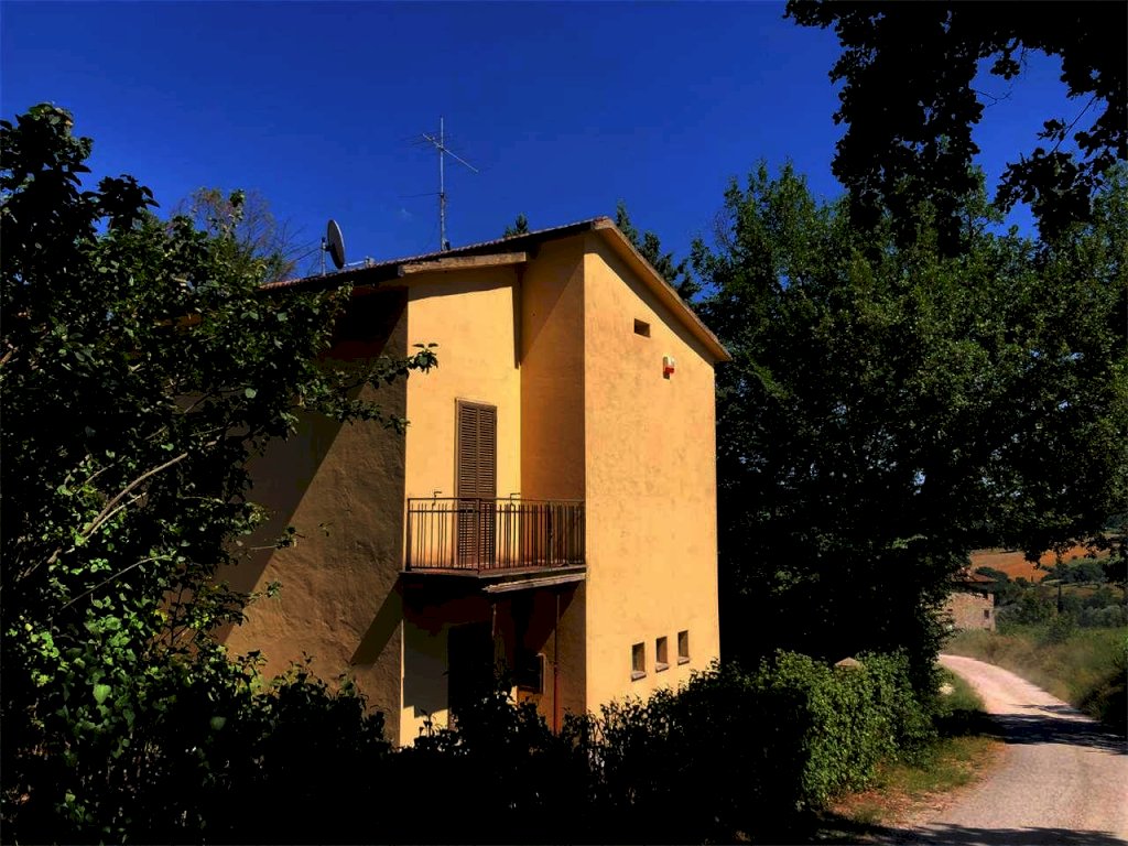 Tra Todi e Monte Castello di Vibio, in aperta campagna, in posizione collinare e panoramica con vista mozzafiato sul centro storico di Todi, proponiamo in vendita abitazione indipendente della superficie commerciale complessiva di circa 180 mq con terreno pertinenziale di circa 5000 mq. La proprietà, dotata di doppio ingresso, pedonale e carrabile, è distribuita su due livelli: al piano terra, con accesso al portico, troviamo un soggiorno, una cucina con camino, un disimpegno, un bagno ed un garage; mentre al piano primo abbiamo un soggiorno con angolo cottura, tre camere da letto, uno studio, doppi servizi e due terrazze perimetrali. Per la sua metratura e per la suddivisione interna, si presta sia come singola abitazione che come bifamiliare. Il terreno alberato che circonda la casa è dotato di recinzione e pozzo privato, al di fuori l'uliveto e parte del terreno agricolo.