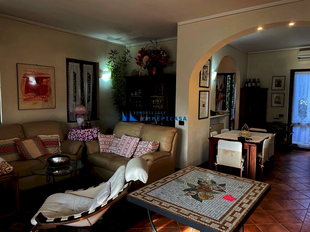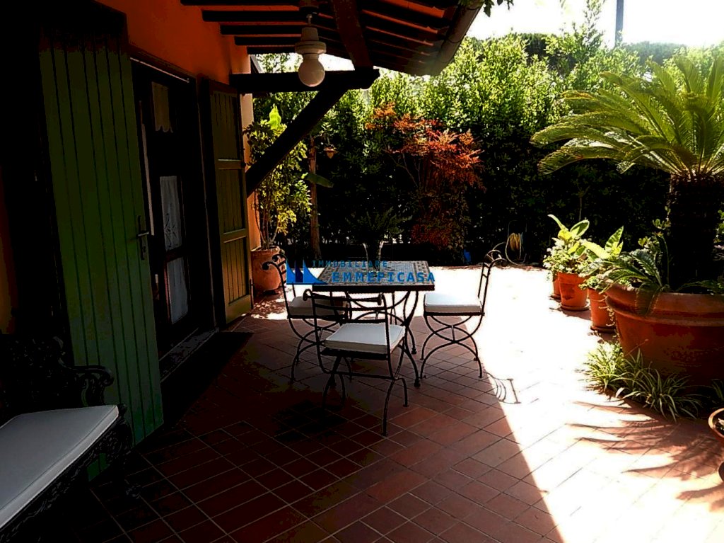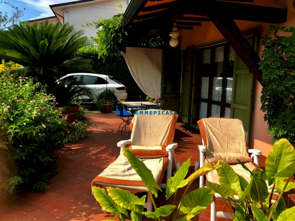Cinquale, a circa 650 metri dal mare si vende villa singola su due livelli composta da ingresso, ampio soggiorno con camino, zona pranzo, cucina e un bagno a piano terra; Tre camere matrimoniali e un bagno al piano primo. Dotata di impianto di climatizzazione, impianto di allarme, impianto di irrigazione automatico con pozzo artesiano, impianto illuminazione esterna e ricovero attrezzi. Ampio giardino su quattro lati con piacevole veranda per pranzare all'aperto. Posti auto interni. Nuovissimo impianto fotovoltaico da 5 kw con batterie di accumulo (15 kw) e pompa di calore. Venduta arredata. Prezzo non trattabile