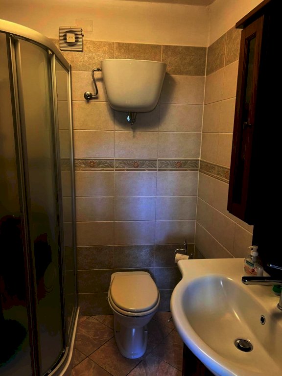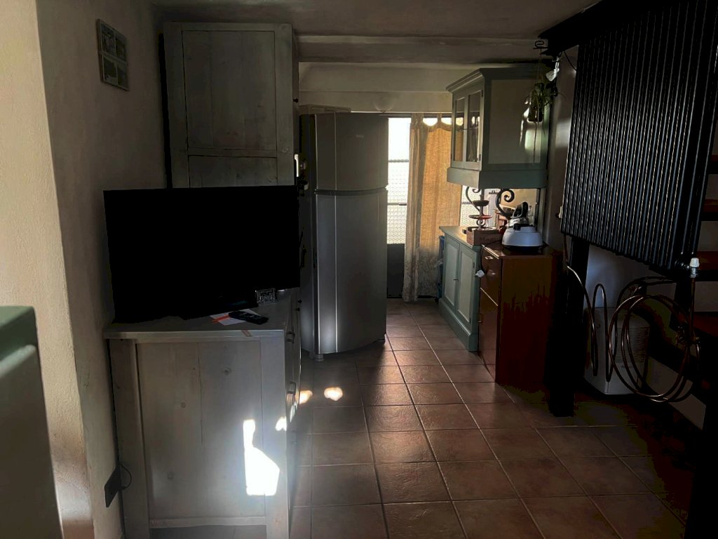 Scendendo tramite una scala nel soggiorno, si accede al piano terra, dove si trova una piccola sala da pranzo con ripostiglio, un cucinotto, ben organizzato, un secondo bagno e una stanza multiuso, versatile per svariate necessità, dal ripostiglio a un locale hobby.