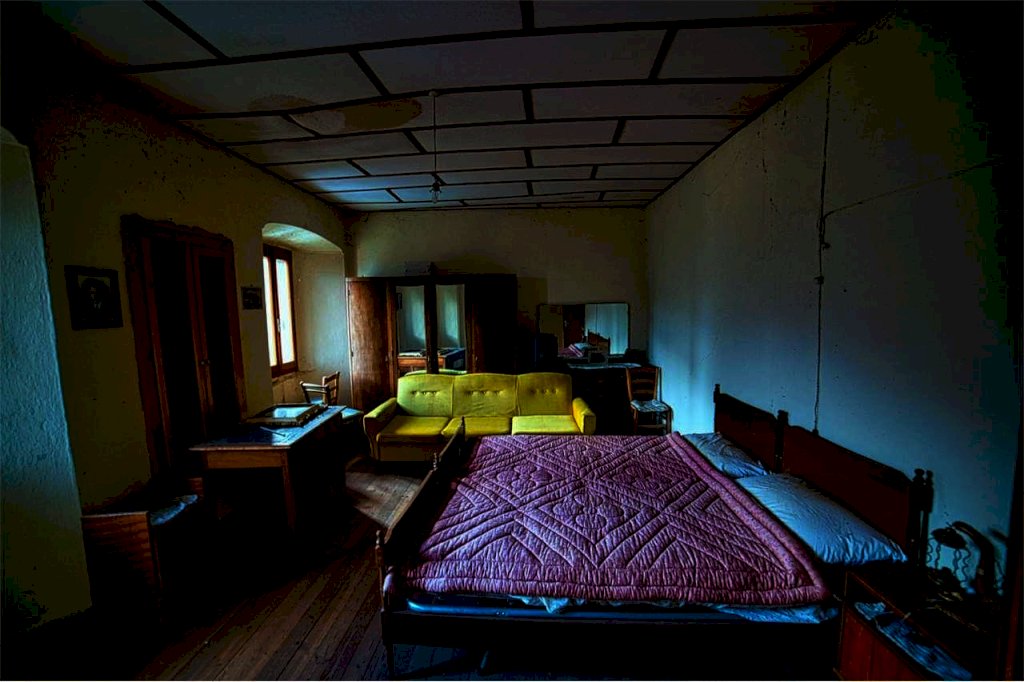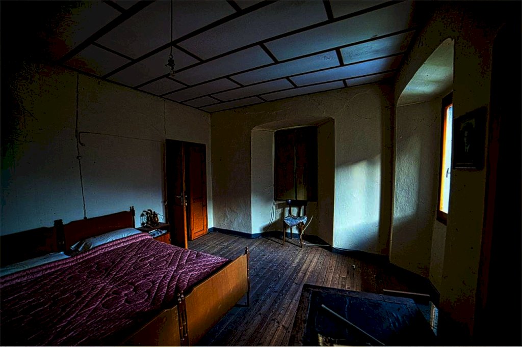 Una scala in sasso interna conduce al primo piano,ove sorgono varie camere e un bagno.