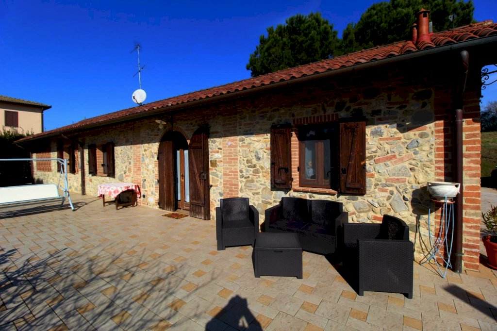 In zona collinare ed a pochi minuti di auto da Poggibonsi, vendiamo casa singola libera su 4 lati tutta in stile toscano con travi e pietra a vista , tutta distribuita al piano terreno con resede e terreno intorno . L'abitazione è frutto di un completo recupero e restauro di un vecchio fienile negli anni 2007/2008 ed è composta da : soggiorno ampio con caminetto e cucina in semi muratura a vista in stile tipico toscano , disimpegno notte, camera matrimoniale con cabina armadio e proprio bagno finestrato con doccia, n.2 camerette singole e ampio bagno finestrato con vasca idromassaggio e doccia. Terreno di proprietà con possibilità di realizzare piscina . INFO IN AGENZIA .