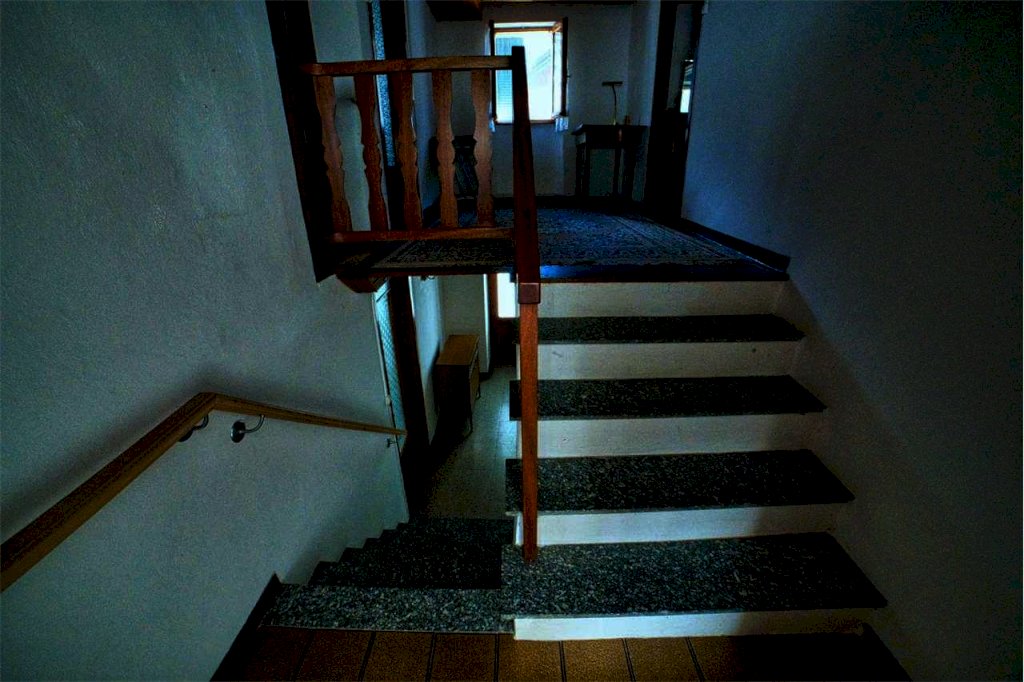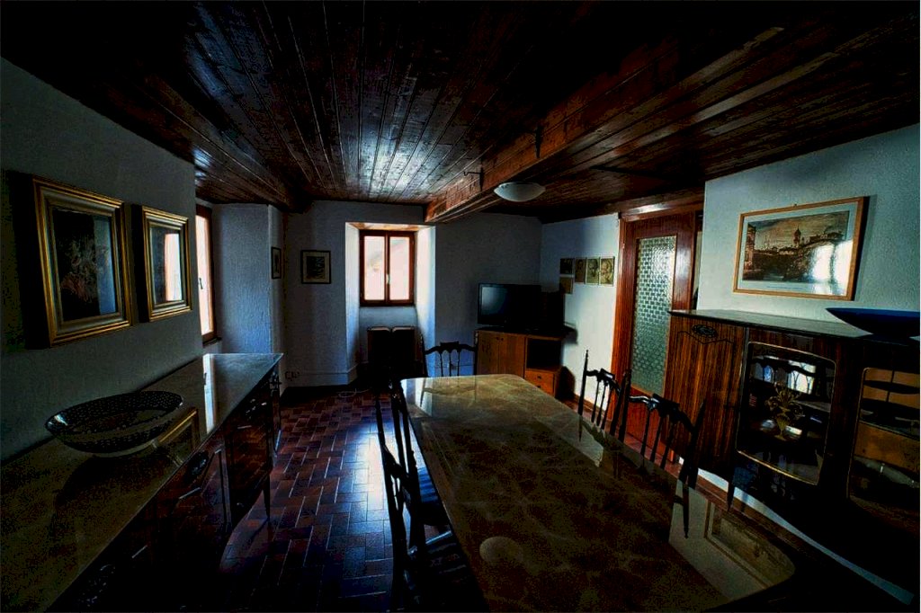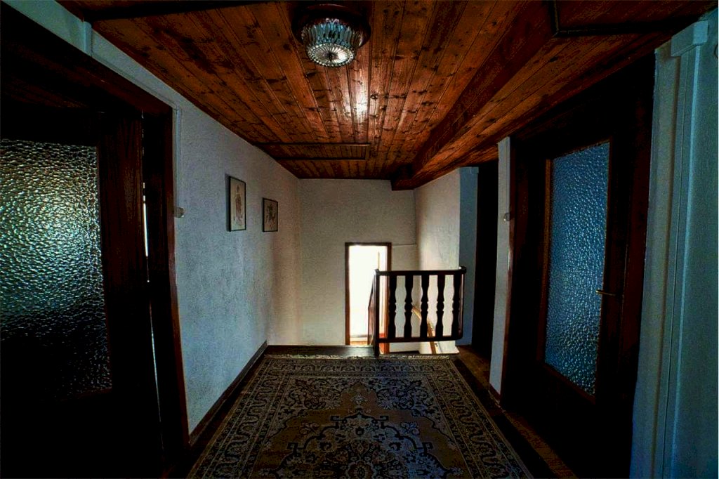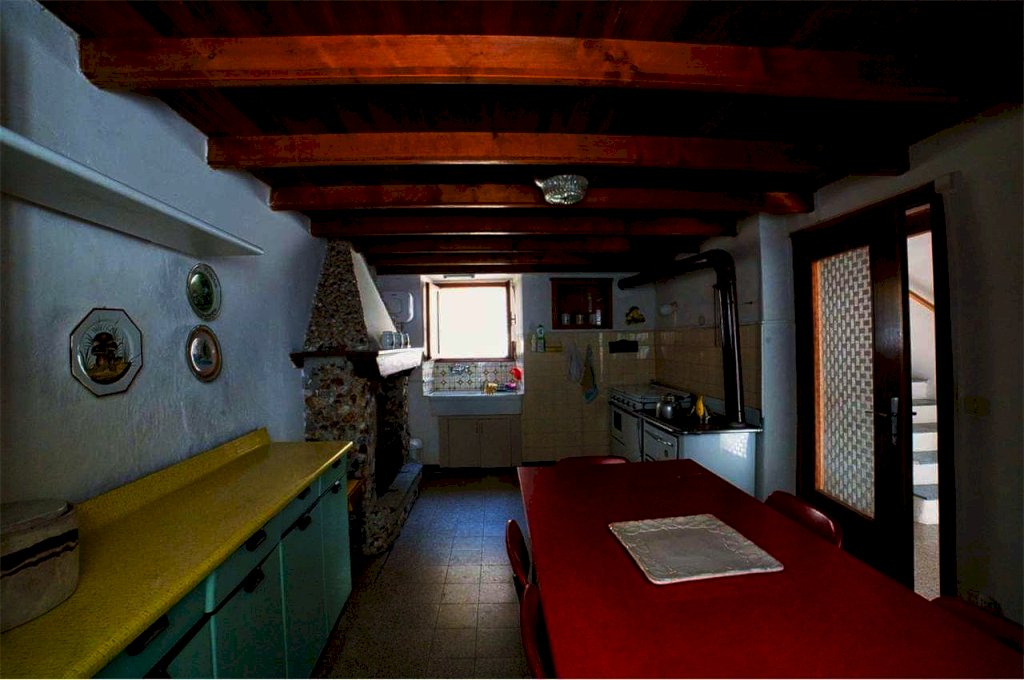 Al piano terra, superato l'angolo legnaia ed il ripostiglio, posti proprio sotto il balcone, abbiamo due spaziose cantine a volta. Salendo arriviamo alla zona living del primo piano; qui dopo il disimpegno d'ingresso, abbiamo la cucina, dotata di frigorifero, camino, stufa a legna economica con cui è anche possibile cucinare, boiler da 10 litri per acqua calda e gas naturale per i fornelli del piano cottura, erogato da due bomboloni posti all'esterno. La cucina forma un ampio e accogliente locale unico con la sala da pranzo. Segue un dignitoso soggiorno riscaldato con stufa a legna, ideale per intrattenersi nelle proprie occupazioni o per rilassarsi con amici e parenti. Salendo la scalinata interna, sul pianerottolo che unisce questo piano con quello sovrastante , incontriamo un bagno con vasca e scaldabagno elettrico per acqua sanitaria, che, grazie ad una soluzione ibrida, puó anche scaldare l'ambiente mediante legna. Il bagno è dotato di lavatrice ed è molto luminoso.
