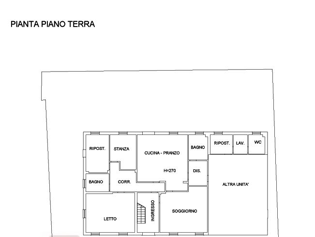 Dal corridoi si accede inoltre ad un locale tecnico ad un grande locale ripostiglio.