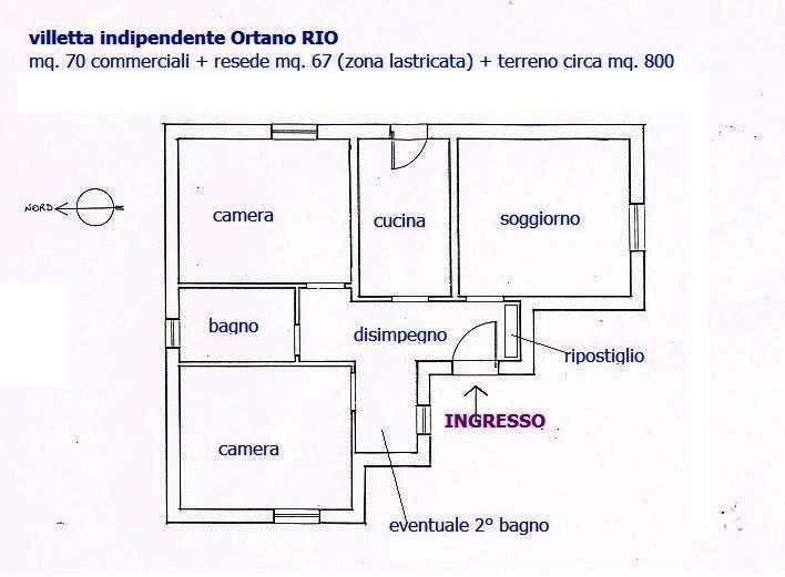 RIO MARINA, località Ortano, proponiamo in vendita graziosa villetta indipendente di 70 mq su un unico piano con resede lastricata di circa 67 mq e giardino di 800 mq. Internamente composta da: ingresso, soggiorno, cucina abitabile, due camere da letto e bagno. L'immobile fa parte del comprensorio Villaggio Turistico di Ortano, con uso di ombrellone e due sdraio. Le piscine sono tre, di differenti profondità ed una dotata di angoli idromassaggi. La spiaggia è dotata di docce e beach bar.