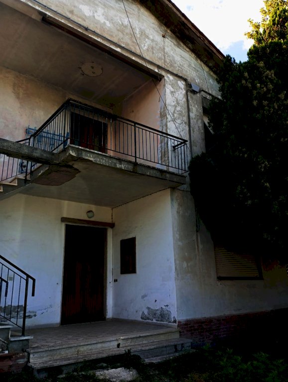 In vendita, una casa di circa 280 mq da ristrutturare, distribuita su due piani. Al piano terra si trova una loggia, mentre una scala esterna conduce al primo piano, dove un piccolo terrazzo coperto dà accesso all'abitazione. Qui si trovano una spaziosa stanza, una cucina con ripostiglio, un soggiorno, un bagno e altre tre stanze. Completano la proprietà un giardino che circonda l'immobile.