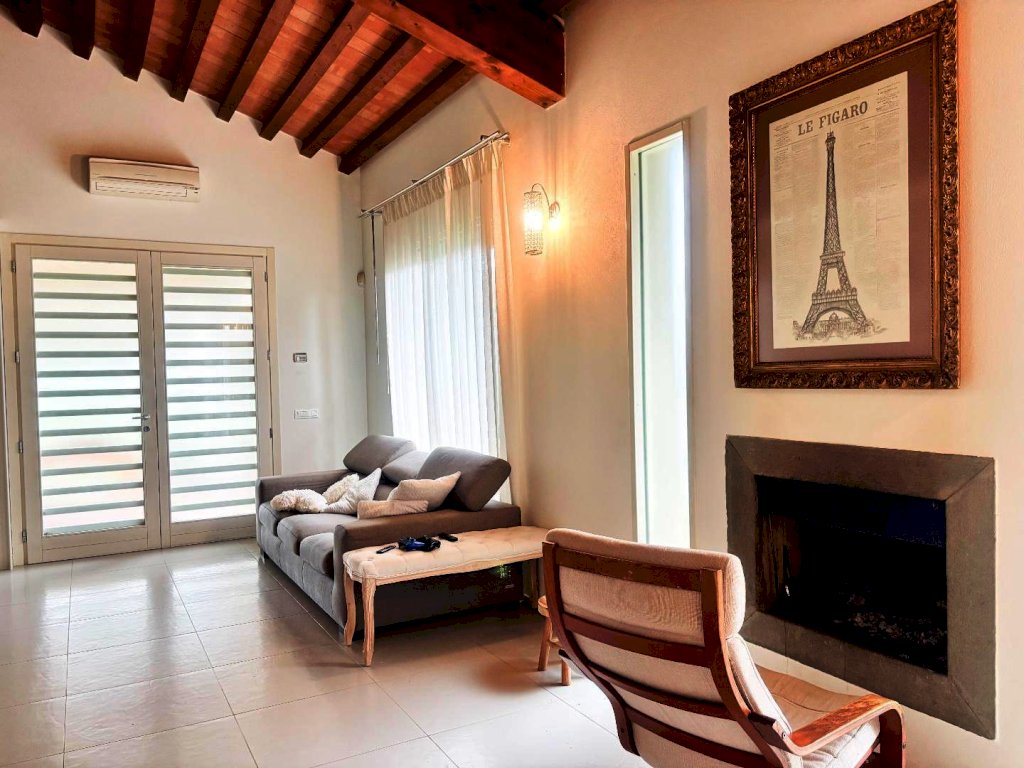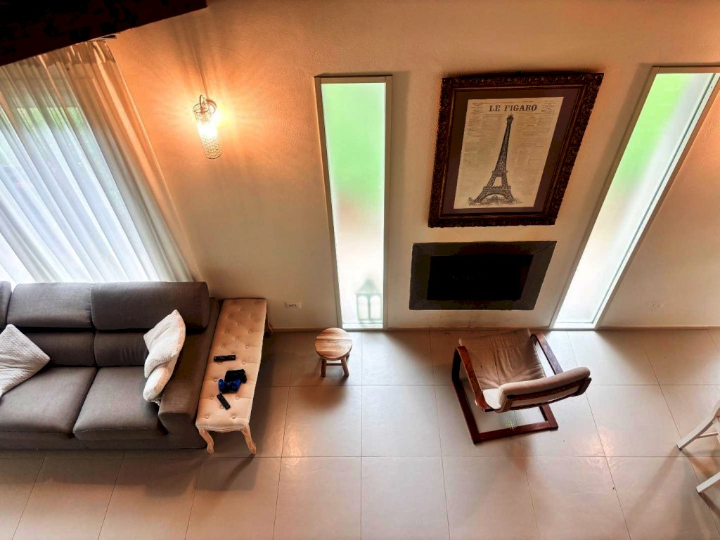 Piano Terra: L'ingresso apre su un salotto luminoso, caratterizzato da un bellissimo caminetto e numerose vetrate che creano un continuum visivo con il giardino. Troviamo poi una cucina abitabile, due camere da letto matrimoniali e due servizi igienici curati nei dettagli.
