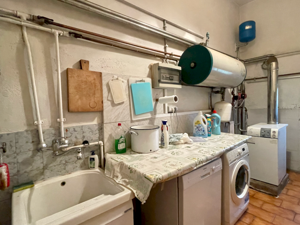 Al piano terra si trovano: un ingresso, una spaziosa cucina/pranzo dotata di un grande camino, una camera da letto (utilizzabile anche come studio), un disimpegno, un bagno con doccia, un locale tecnico/lavanderia e una cantina, entrambi con accesso diretto al giardino posteriore.Al primo piano si trovano: un ampio disimpegno, una cucina/pranzo, un salotto, quattro camere da letto e un bagno. Un piccolo corridoio permette di accedere a un vasto terrazzo di oltre 52 mq, che offre vista sul giardino sia anteriormente che posteriormente.