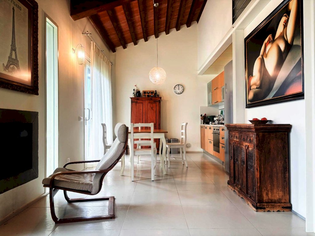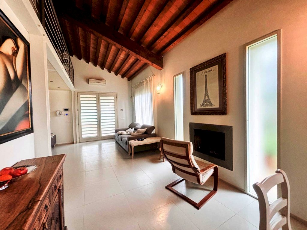 Piano Terra: L'ingresso apre su un salotto luminoso, caratterizzato da un bellissimo caminetto e numerose vetrate che creano un continuum visivo con il giardino. Troviamo poi una cucina abitabile, due camere da letto matrimoniali e due servizi igienici curati nei dettagli.