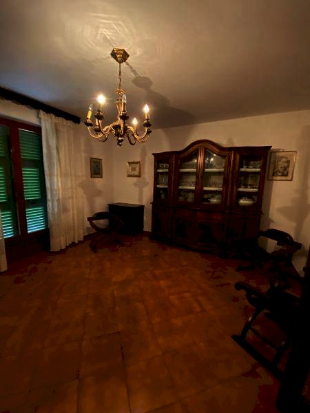 Loc. Falcinello, appena fuori dal borgo, casa indipendente divisa in due appartamenti e composta al piano terra da portico, locale rustico con soggiorno, cucina abitabile, bagno con doccia, locale lavanderia e cantina con forno a legna; al piano superiore con accesso tramite scala in marmo, cucina, soggiorno con terrazza con vista aperta sino al mare, disimpegno, tre camere e due bagni; al piano secondo appartamento composto da cucina, soggiorno con terrazza con vista aperta sino al mare, disimpegno, tre camere e due bagni e sottotetto. Completano la proprietà una corte pavimentata, un piccolo giardino e posti auto.