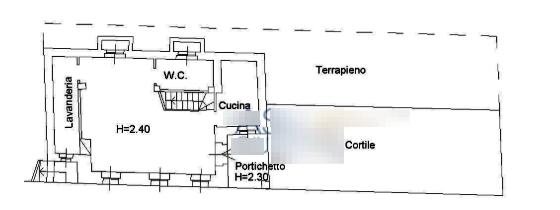 - al piano terra da soggiorno, cucina, bagno, lavanderia, un portichetto e un cortile adibito a parcheggio;