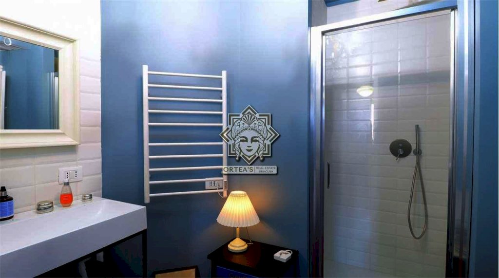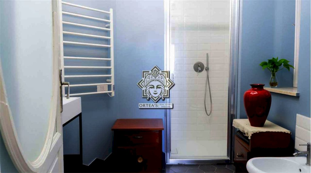 Questo appartamento al primo piano dispone di un confortevole soggiorno, di una camera da letto, di una cucina, di una locale bagno rinnovato con doccia e di una altra stanza utilizzata come camera studio, al piano superiore un'altra camera con accesso ad uno dei due terrazzi vista mare, salendo di un ulteriore livello altre due camere, un ulteriore bagno e il terrazzo dal quale è possibile godere a pieno della vista mare diretta potendo anche osservare l'intera zona denominata riviera della città di Siracusa che insieme all'isola di Ortigia abbracciano idealmente uno dei due porti marittimi ben visibile. Questa casa sorge su uno dei due storici arsenali di epoca greca riscoperti di recenti durante i lavori della nuova rete fognaria qualche anno fa.