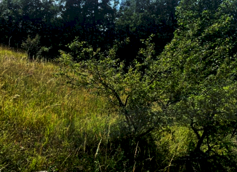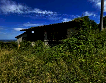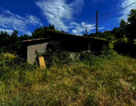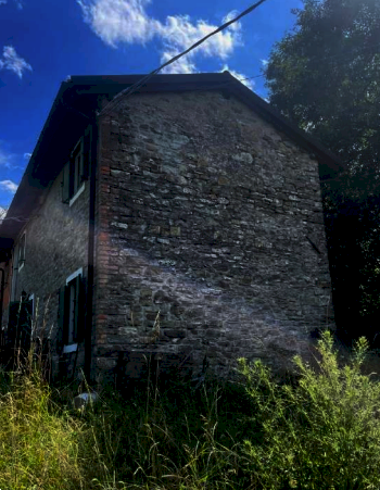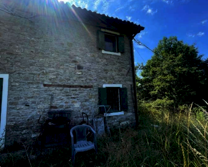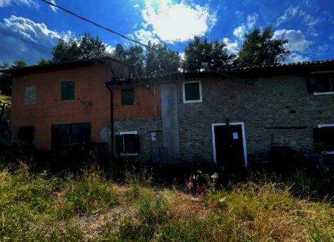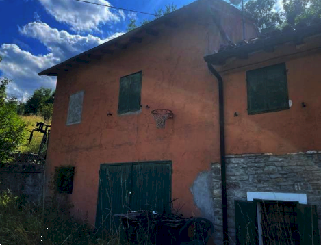 Abitazione con annessa piccola corte recintata, distribuito su due piani con nove vani locali (piano terra con cucina, soggiorno-pranzo oltre a cantina con accesso separato esterno, e piano primo con ingresso diretto dalla piccola corte, tre camere, disimpegno e bagno) collegati da una scala interna; - piccolo edificio di servizio anch'esso distribuito su due piani (piano terra con portico, cantina, ripostiglio e piano primo con fienile e pollaio); - area cortiliva pertinenziale ad uso esclusivo; - tre appezzamenti di terreni agricoli confinanti.